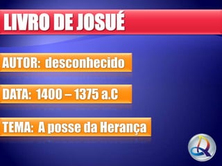 O documento discute a vida e obra de Josué, que liderou os israelitas após a morte de Moisés. Ele conquistou a terra prometida e dividiu as terras entre as tribos de Israel, construindo o Tabernáculo e estabelecendo cidades de refúgio. No final de sua vida, Josué exortou o povo a servir apenas a Deus.