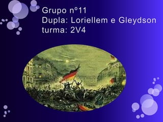 O documento descreve a unificação da Alemanha no século XIX, começando com a Confederação Alemã de estados independentes após Napoleão e a rivalidade entre a Áustria e a Prússia. A Prússia promoveu o acordo alfandegário de Zollverein que levou ao crescimento do sentimento pan-germânico. Sob a liderança de Bismarck, a Prússia derrotou a Dinamarca, Áustria e França, levando à proclamação do Império Alemão em 1871 e ao