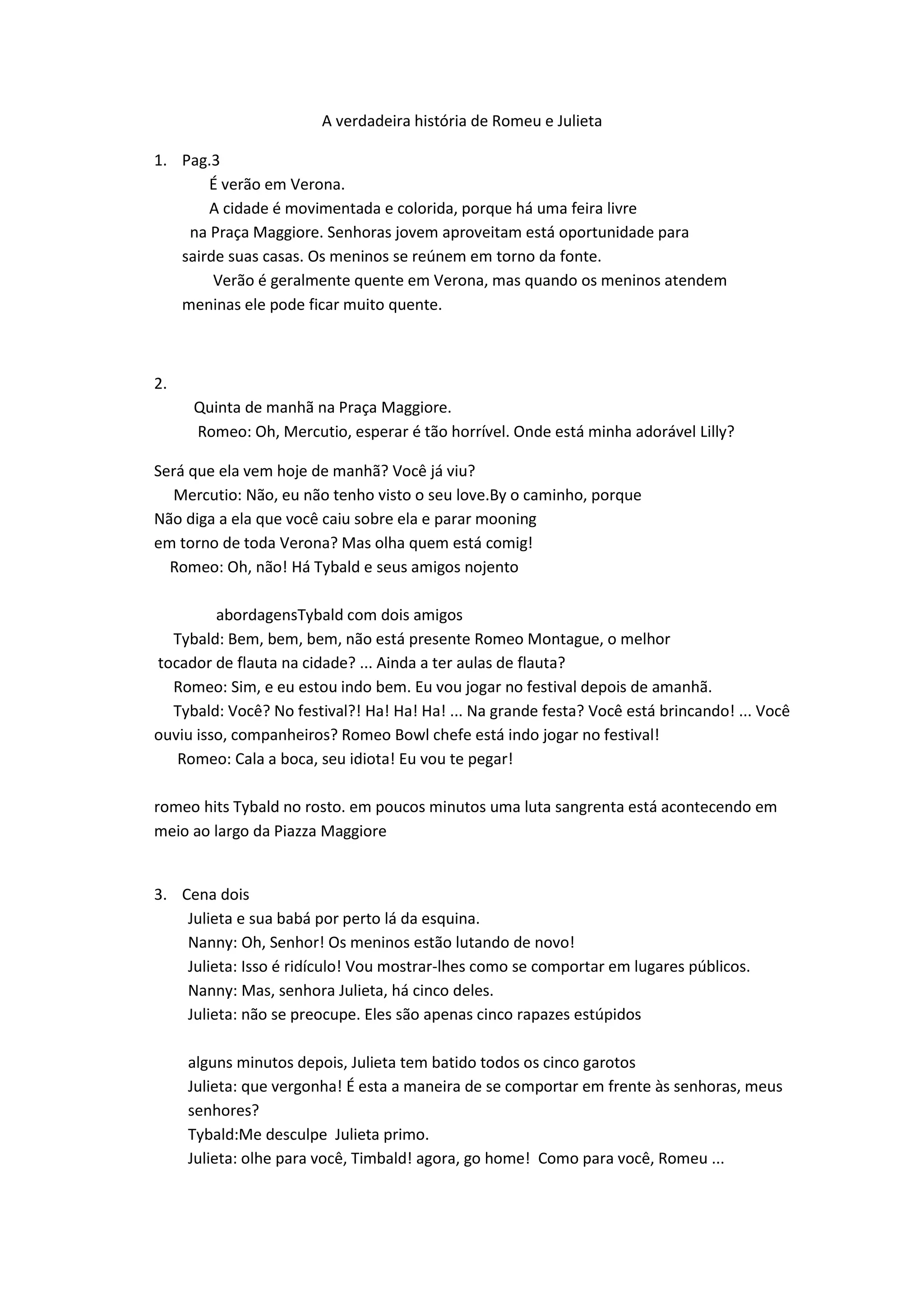 1) É verão em Verona e Romeu está esperando ver sua amada Lilly na praça da cidade. No entanto, ele acaba se envolvendo em uma briga com Tybald e seus amigos.
