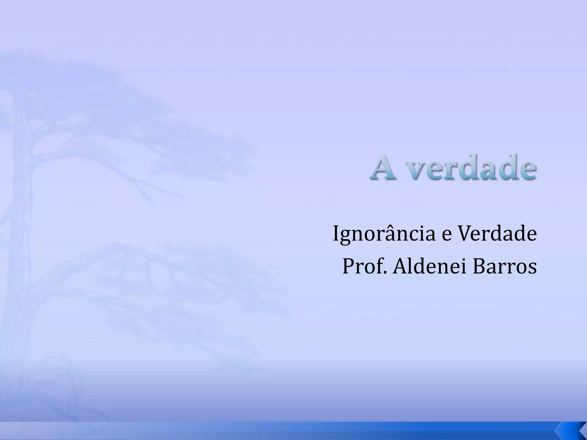 O documento discute como a ignorância e a incerteza levam à busca da verdade através da filosofia. A filosofia não é o aprendizado de ideias, mas sim a atividade de filosofar movida pelo desejo da verdade. A ignorância profunda faz com que nem percebamos o que não sabemos, enquanto a incerteza revela falhas no que acreditamos. Novas descobertas podem nos deixar admirados por não se encaixarem em nossas crenças, despertando o desejo de superar a ignorância atrav