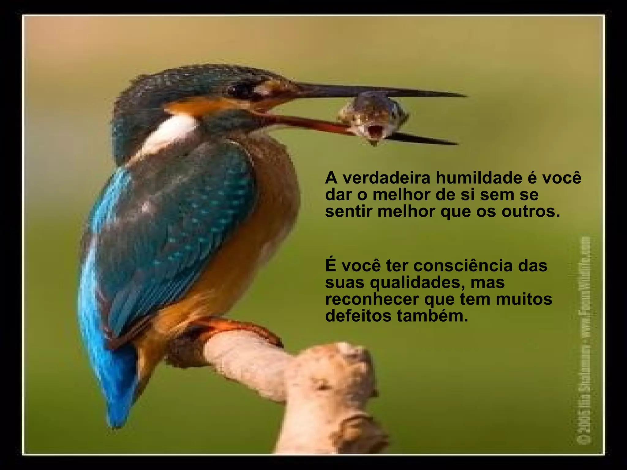 A verdadeira humildade é dar o melhor de si sem se sentir superior, reconhecer tanto as próprias qualidades quanto defeitos, e mostrar talentos sem querer ofuscar os dos outros. É também admirar os outros pelo que são e fazem, aceitar responsabilidades para servir mais, e dar opiniões disposto a ouvir as dos outros.