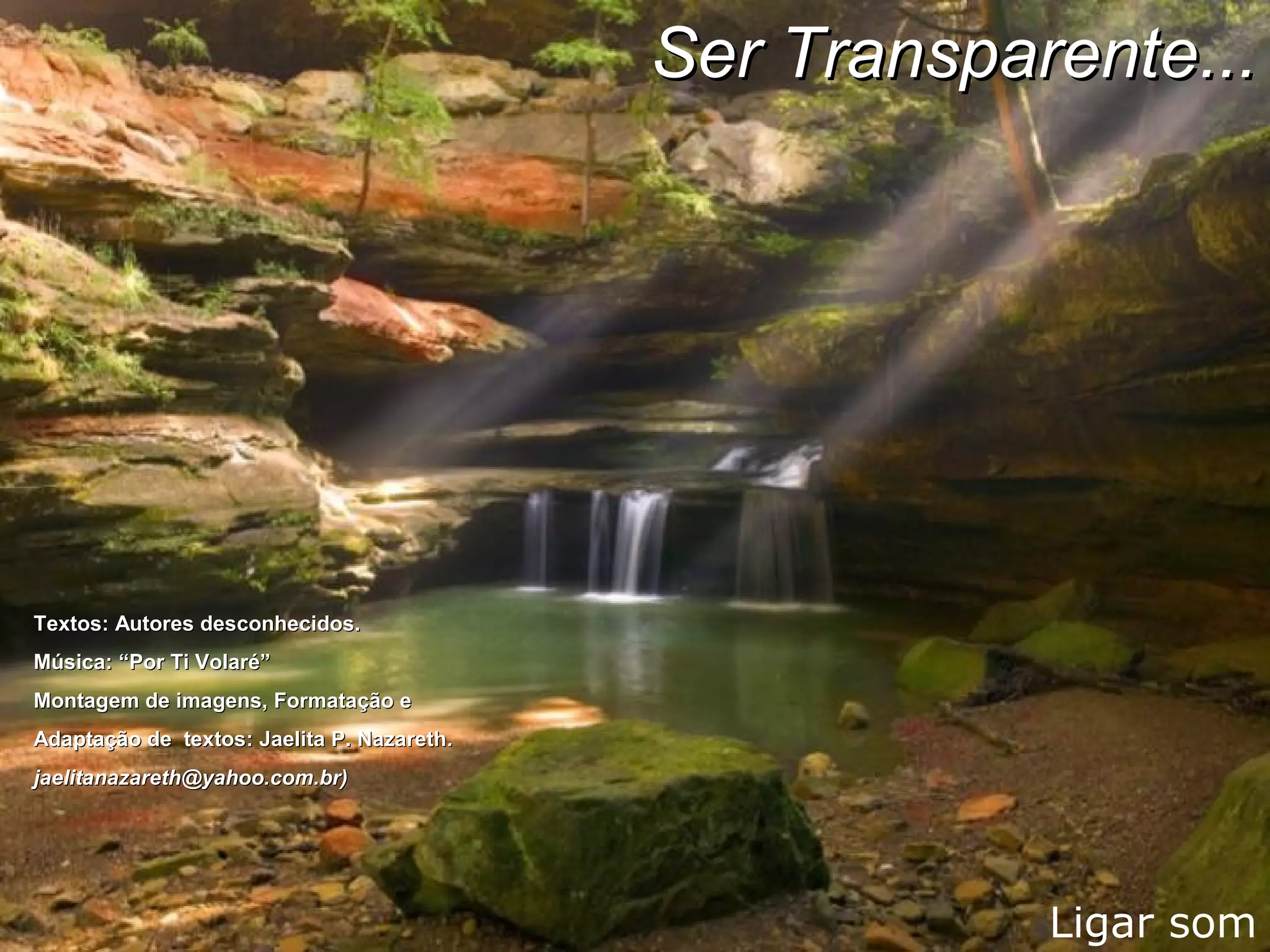 O documento discute a importância de ser transparente e expressar os sentimentos genuinamente, ao invés de esconder fragilidades atrás de máscaras. Também enfatiza que o amor deve estar presente em todas as áreas da vida para evitar resultados negativos como perversidade, implacabilidade e hipocrisia. A conclusão é que as pessoas devem viver docemente, sentir e amar de forma transparente.