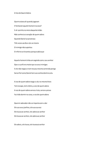 3) Sua fé em Deus o protegeu, e os leões não o atacaram, mostrando que a voz daqueles que adoram a Deus tem poder.