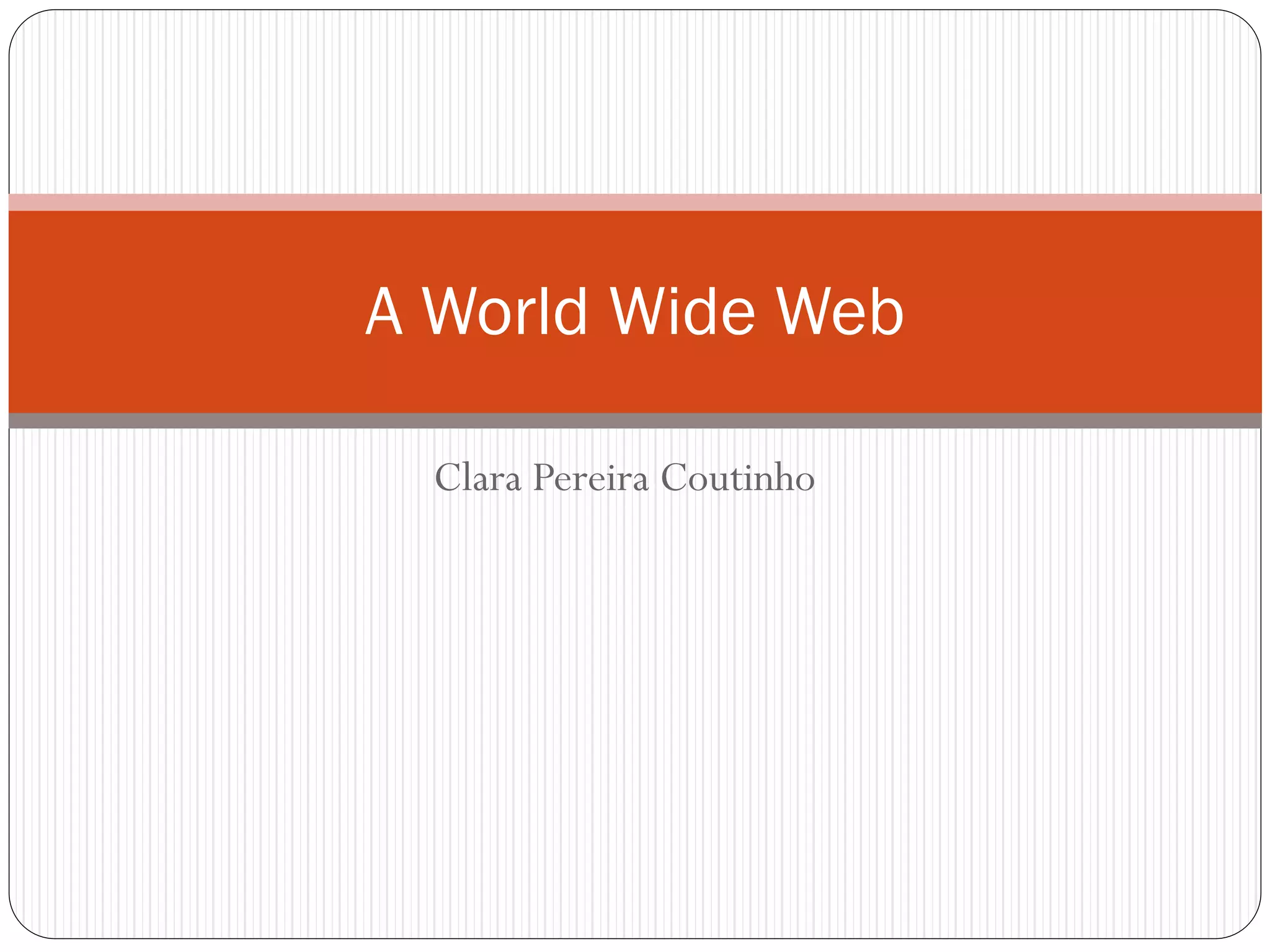 A World Wide Web documento descreve a criação da World Wide Web no início dos anos 1990 pelo CERN para permitir que colaboradores compartilhassem ideias e informações. Após o estabelecimento das especificações pelo CERN em 1991, multiplicaram-se os servidores e navegadores, tornando a web uma "teia" global de informações. A web funciona por meio de arquitetura cliente-servidor para hipertexto distribuído acessado via Internet.