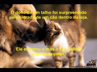 Um cão entrou numa talho levando um bilhete pedindo salsichas e carneiro. O dono da talho seguiu o cão até uma casa, onde o cão entregou as compras e tentou chamar a atenção do dono bater na porta e janela, mas quase foi espancado até o dono da talho explicar que o cão estava apenas entregando as compras.