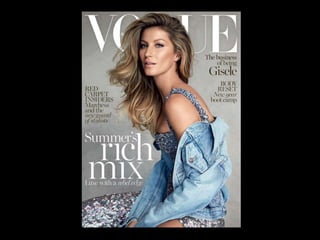 O documento resume informações sobre diversas figuras e publicações importantes da moda, como estilistas, modelos, agências, revistas e marcas. Detalha a história e realizações de nomes como Giovanni Bianco, Gisele Bündchen, Harper's Bazaar, IMG Models e Louis Vuitton.