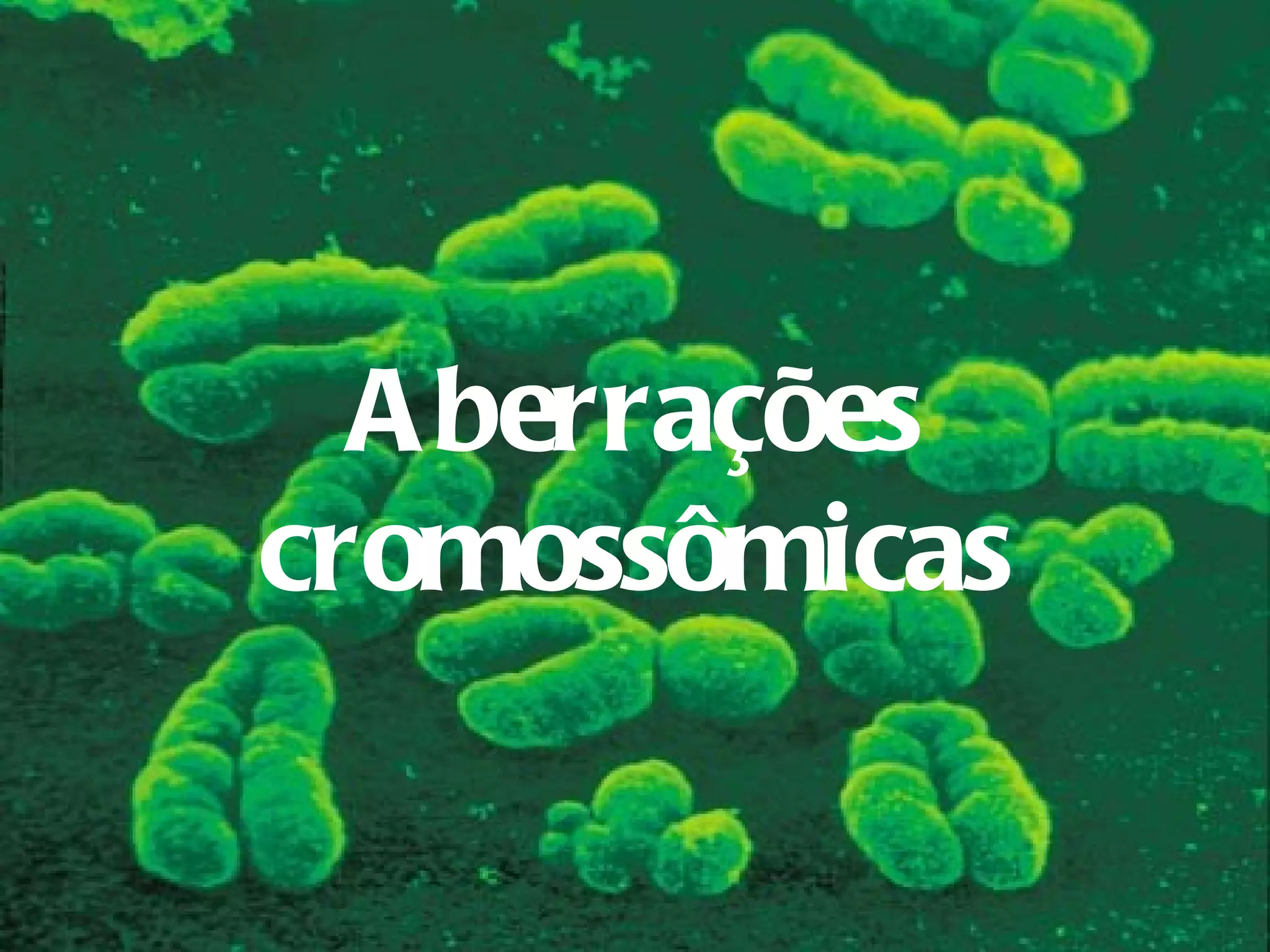 O documento descreve diferentes tipos de aberrações cromossômicas, incluindo aneuploidias que envolvem ganho ou perda de um ou mais cromossomos, e euploidias que envolvem múltiplos exatos do número haplóide normal. Também discute rearranjos estruturais equilibrados e não-equilibrados que resultam da quebra e recombinação cromossômica.
