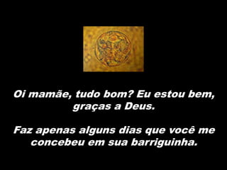 O documento é uma carta fictícia de um feto para a mãe descrevendo seu desenvolvimento nos primeiros meses de gestação, expressando alegria por estar sendo concebido e preocupação quando a mãe chora. No final, o feto implora para não ser abortado durante o procedimento.