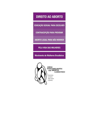 1) Aproximadamente mil mulheres morrem por ano realizando abortos clandestinos no Brasil e estima-se que 2 milhões de abortos clandestinos são realizados anualmente. Legalizando o aborto, o governo teria controle sobre o número de procedimentos e poderia tentar reduzi-lo.