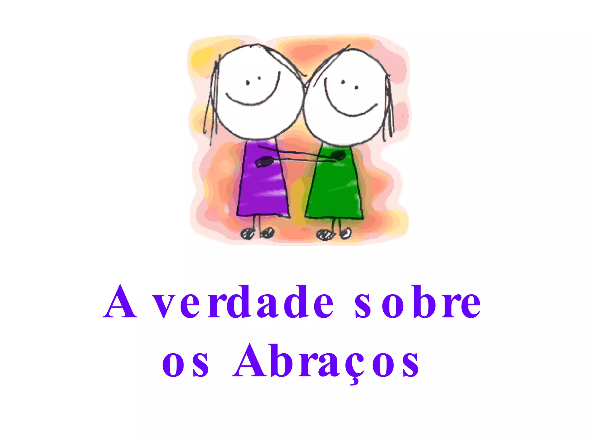 O documento lista as virtudes dos abraços, afirmando que eles são totalmente naturais, livres de colesterol e pesticidas, recicláveis, fáceis de transportar e seguros em qualquer clima. Também afirma que abraços são especialmente recomendados para dias frios e chuvosos e efetivos para tratar problemas como depressão e pesadelos.