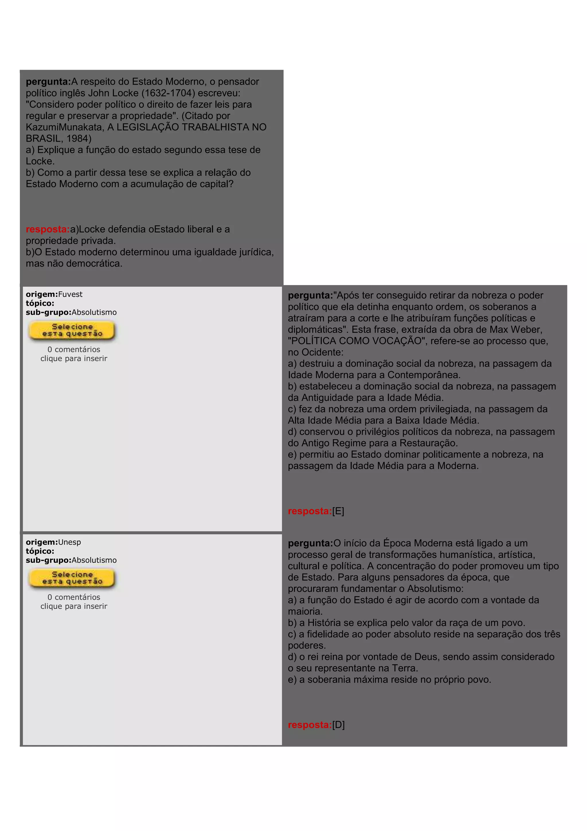 O documento discute a teoria do Estado Moderno de acordo com o pensador inglês John Locke, que via o poder político como o direito de fazer leis para regular e preservar a propriedade privada. Isso explica como o Estado Moderno apoiou a acumulação de capital ao garantir a propriedade privada por meio de leis, embora tenha estabelecido apenas uma igualdade jurídica e não democrática na sociedade.