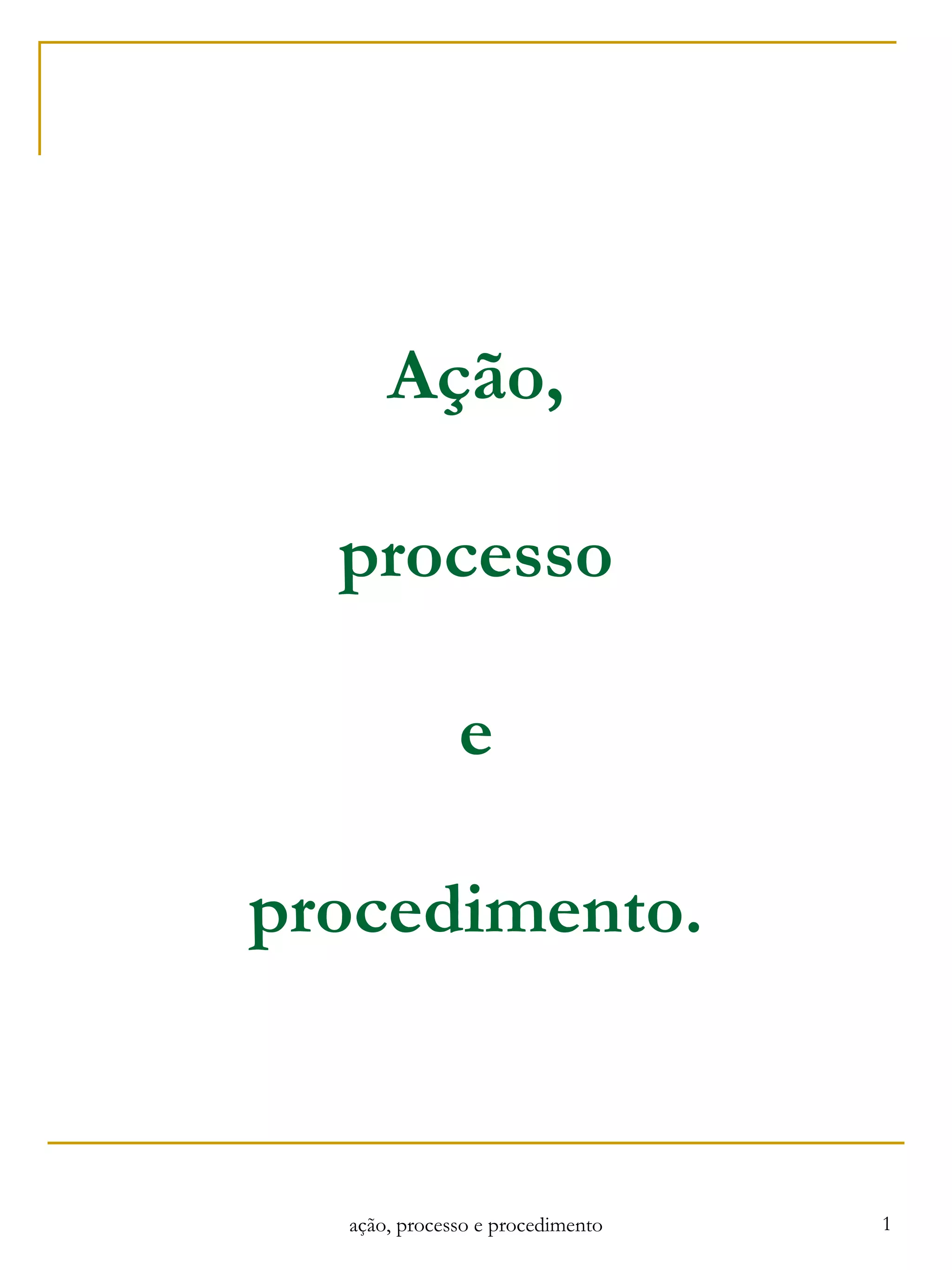 Ação, processo eprocedimento. ação, processo e procedimento