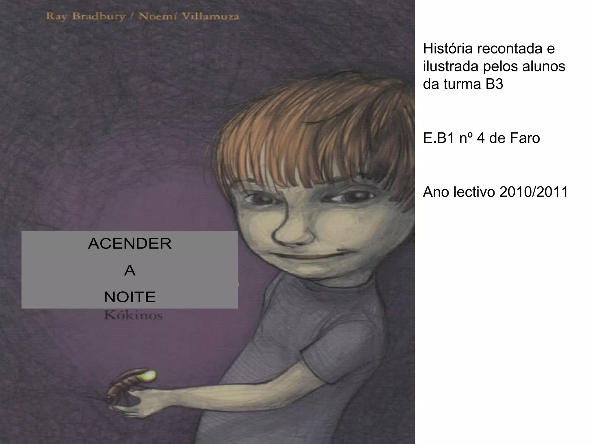 A história conta a história de um menino que tinha medo da noite e das luzes se apagarem. Um dia, bateram à porta e ele conheceu a Escuridão, que o convenceu que na noite pode ouvir os grilos e as rãs e ver as estrelas, ajudando-o a perder o medo do escuro.