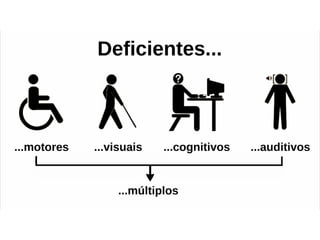 O documento discute a importância da acessibilidade na web e fornece diretrizes para tornar sites acessíveis. Aborda iniciativas internacionais e nacionais de acessibilidade, métodos de avaliação e exemplos práticos de como implementar diretrizes de acessibilidade em sites.