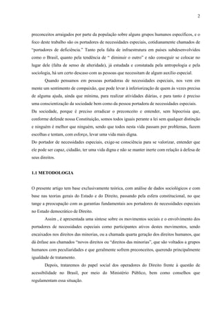 1. O documento discute a importância do direito de acessibilidade na sociedade brasileira contemporânea e como os movimentos sociais promovem a inclusão de pessoas com necessidades especiais.