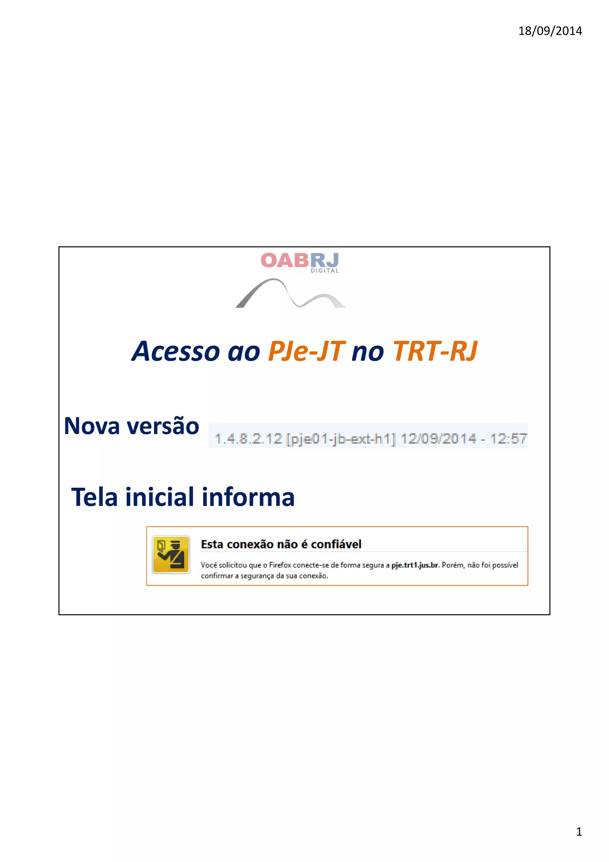 Instruções em 9 etapas para acessar a nova versão do PJe-JT no TRT-RJ, incluindo clicar em botões como "entendo os riscos", "adicionar exceção de segurança", "permitir", e "executar" para contornar avisos de segurança e carregar o assinador.