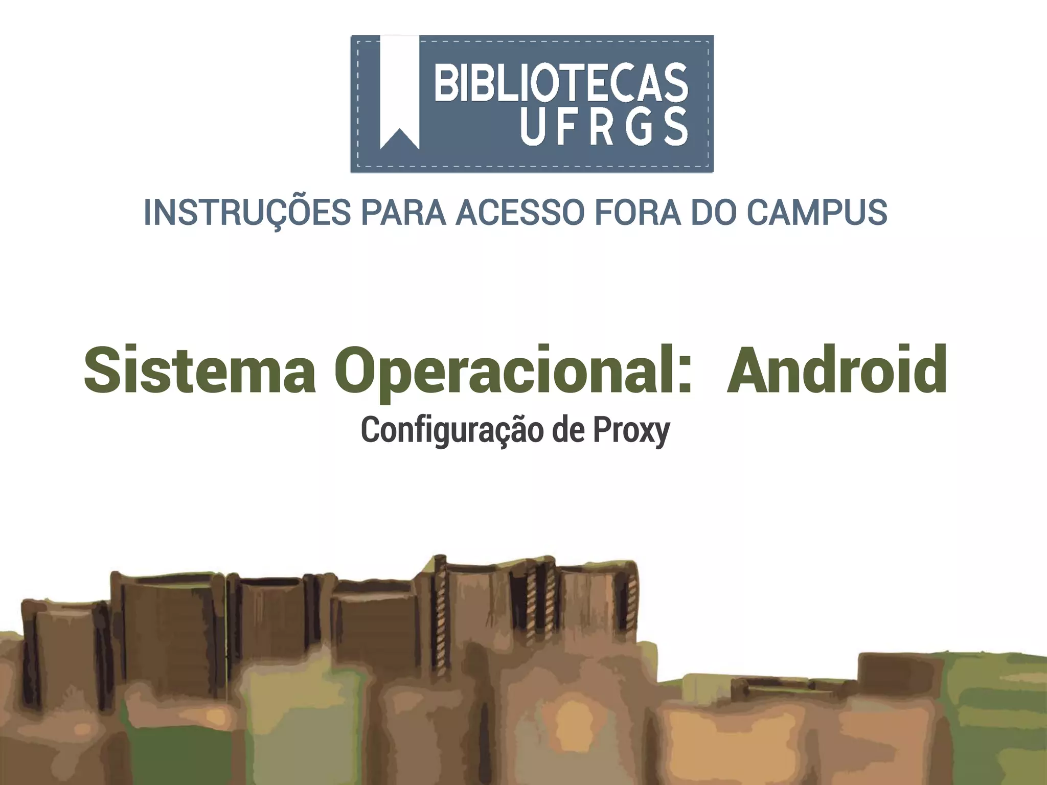 Este documento fornece instruções para configurar um proxy no Android para acessar portais e bases de dados da UFRGS fora do campus. Os usuários da UFRGS como alunos, professores e funcionários precisam seguir 7 passos como alterar as configurações de rede Wi-Fi para manual proxy, inserir o endereço do proxy e número da porta, e usar suas credenciais da UFRGS para acessar os recursos.