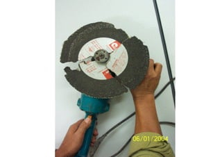 Um trabalhador ficou ferido quando um disco de serra circular se rompeu enquanto cortava uma chapa de alumínio offshore. O disco estava sendo usado em velocidade excessiva e era maior do que o especificado pelo fabricante. Isso causou a fragmentação do disco, com pedaços atingindo o rosto do trabalhador. A lição é que as especificações técnicas devem ser seguidas e EPIs usados para evitar acidentes.