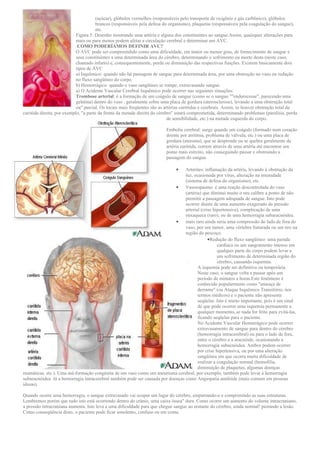 O documento discute acidente vascular cerebral (AVC), também conhecido como derrame cerebral. Explica que o AVC é a terceira causa de morte mundial e principal causa de incapacidade, e que o objetivo do documento é informar pacientes e familiares sobre a doença. Descreve como o cérebro funciona e é estruturado, com diferentes regiões responsáveis por movimento, sensação, fala e outras funções. Explica que um AVC ocorre quando há falta de fluxo sanguíneo para uma área do cérebro, levando