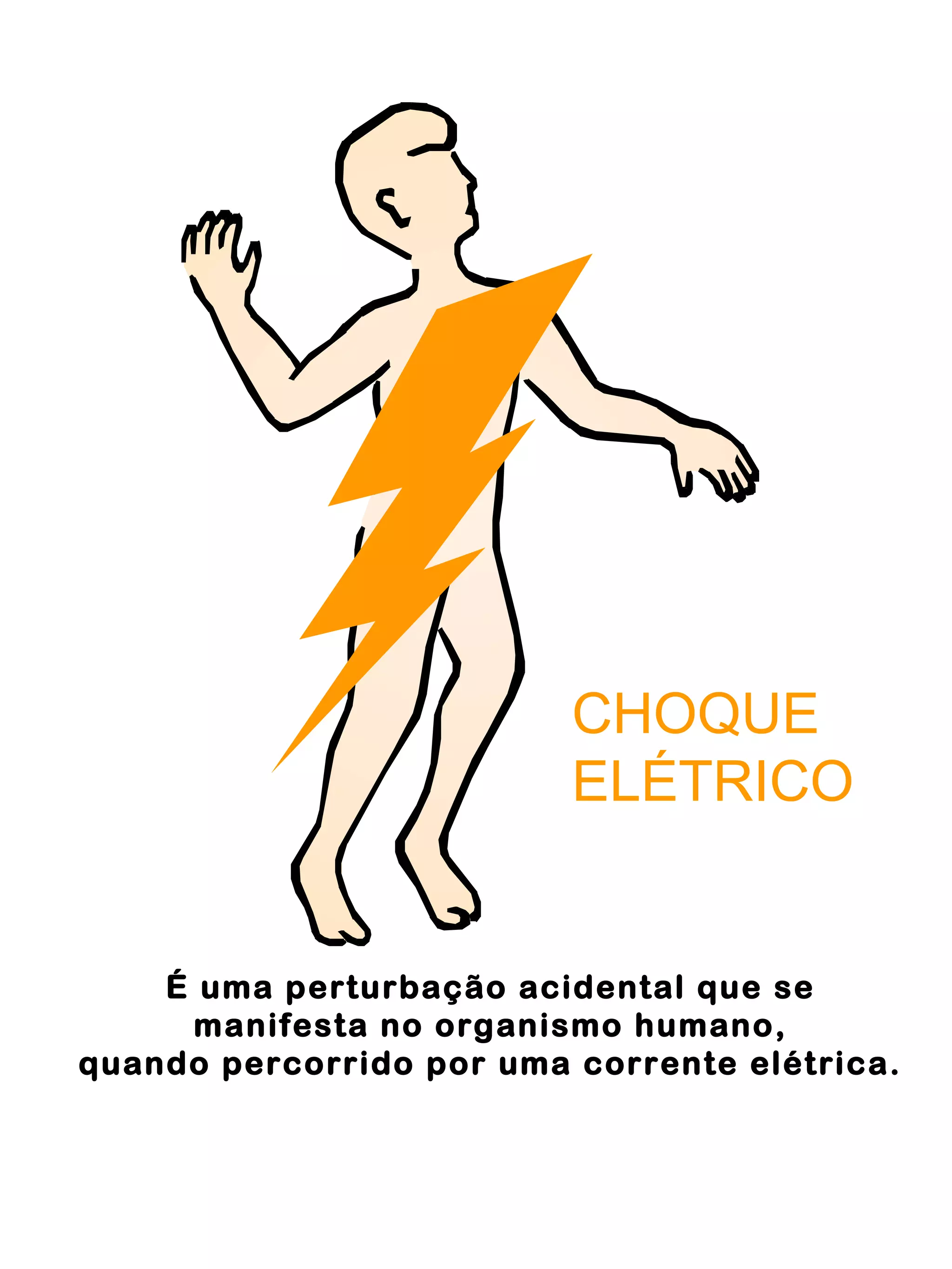 1) Choques elétricos ocorrem quando o corpo humano é atravessado por uma corrente elétrica. 2) A resistência do corpo humano depende de fatores como a pele úmida ou seca. 3) Mesmo correntes baixas podem causar danos à saúde, enquanto correntes altas podem ser letais.