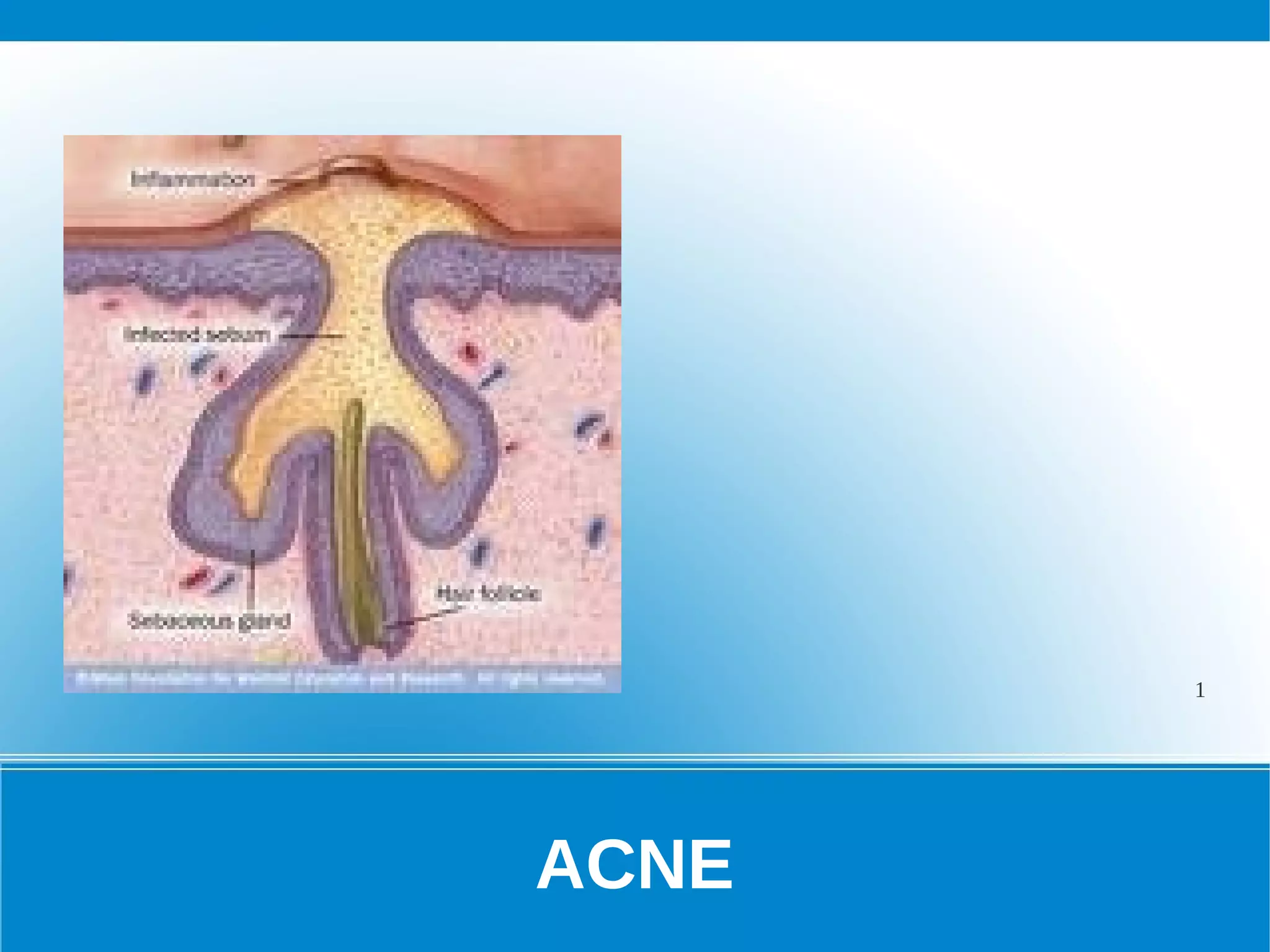 1. A acne é uma doença inflamatória da unidade pilossebácea caracterizada pela obstrução dos folículos e formação de cômedos.