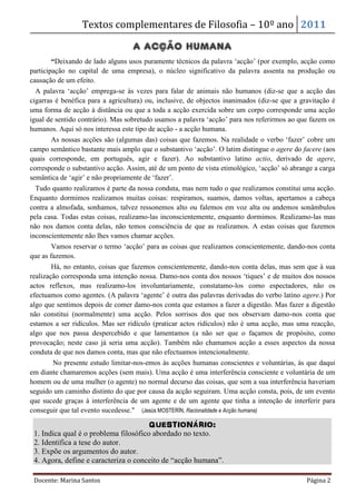 Este documento discute a ação humana voluntária de três frases: