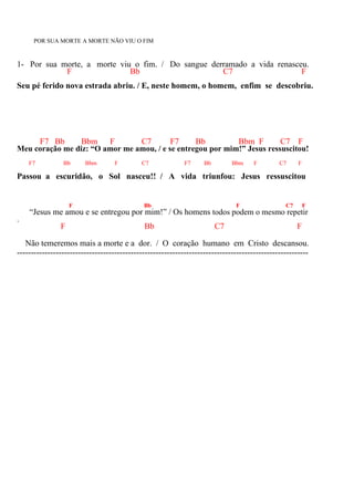 1- Por sua morte, a morte viu o fim. / Do sangue derramado a vida renasceu.