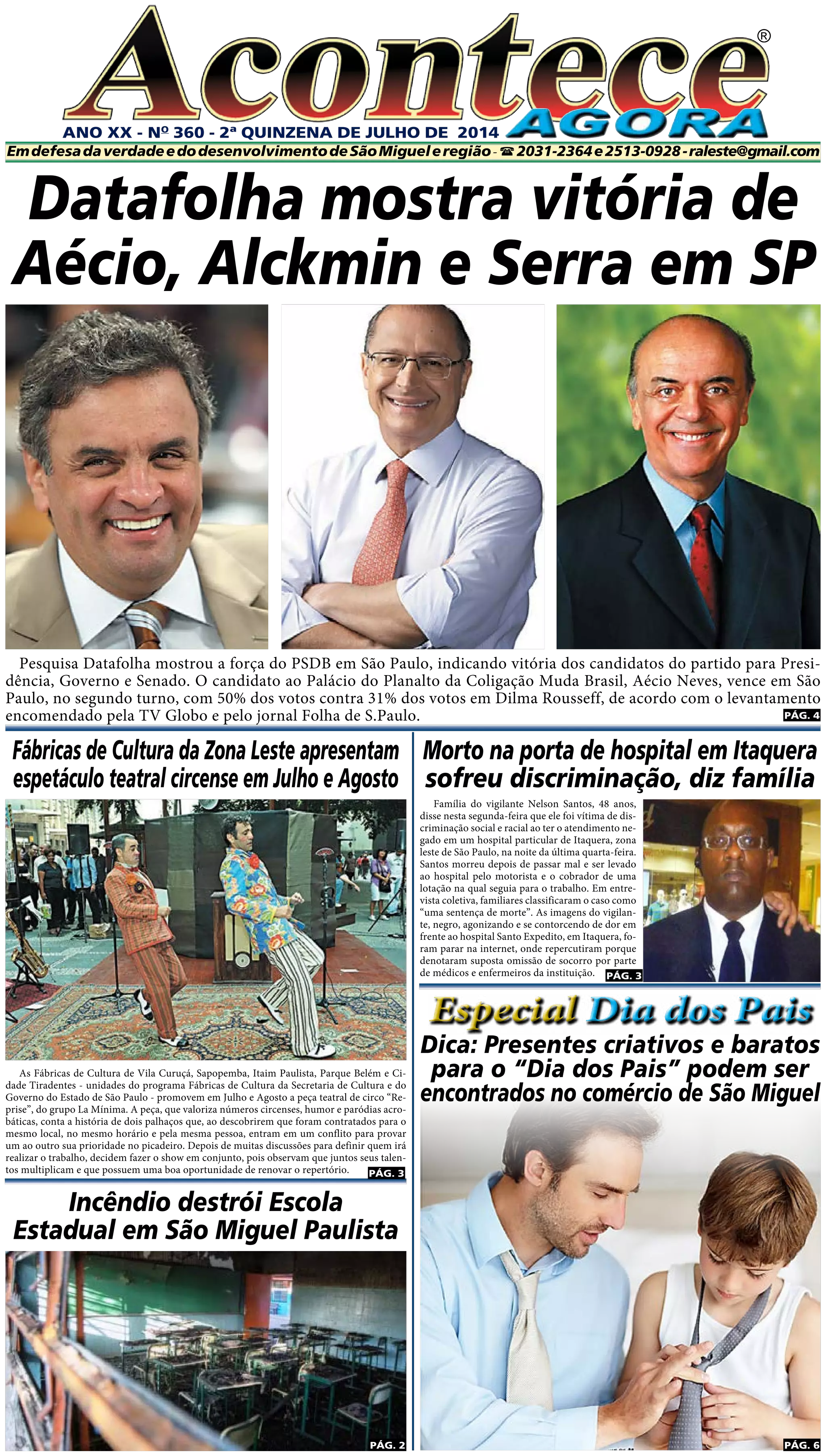 1) Uma pesquisa mostrou vitória dos candidatos do PSDB em São Paulo nas eleições;