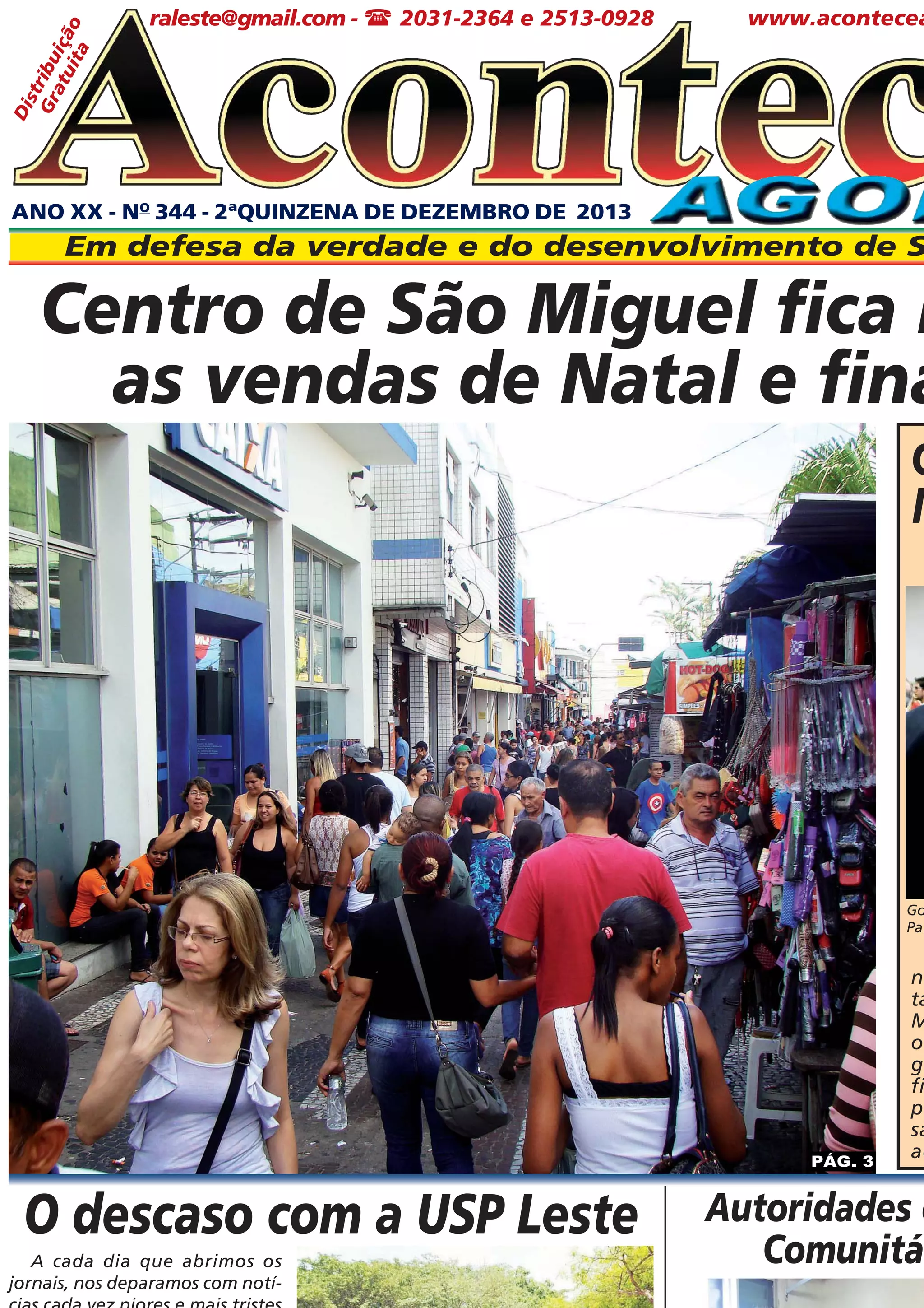 1) O centro comercial de São Miguel está com boas expectativas para as vendas de Natal, esperando um aumento de 20% no faturamento em comparação com o ano anterior.