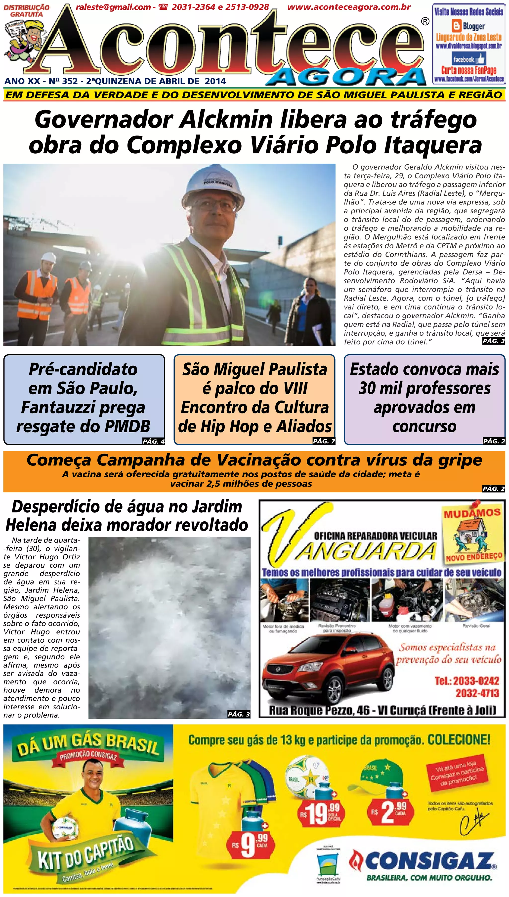 A Campanha de Vacinação contra a gripe começou em São Paulo para vacinar 2,5 milhões de pessoas em grupos de risco gratuitamente. O governador de São Paulo liberou uma nova passagem no Complexo Viário Polo Itaquera. O Estado convocou mais 30 mil professores aprovados em concurso público.