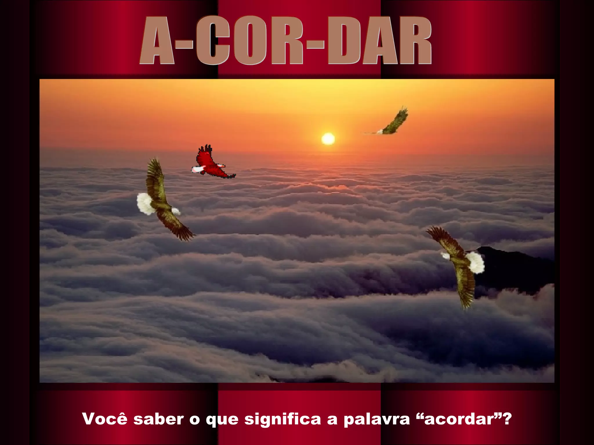 O documento discute o significado de "acordar" e enfatiza a importância de dar cor e propósito à vida. Algumas pessoas vivem adormecidas e não percebem seu potencial. O autor conta sobre um amigo que só acordou tarde para a vida e carreira errada que escolheu. Cada dia é uma nova oportunidade de acordar e colorir a vida, tornando-a bela e fazendo os outros felizes.