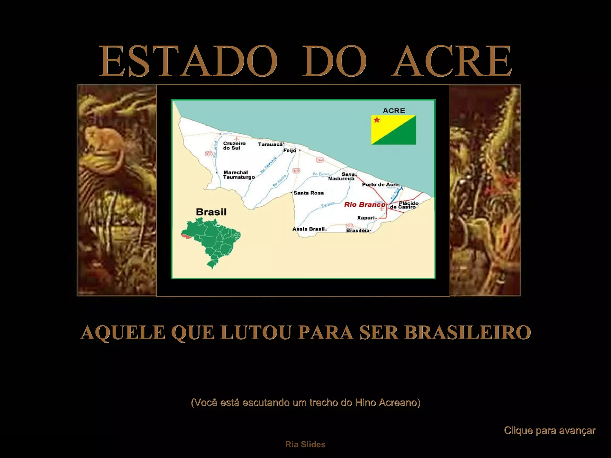 O documento resume a história do Acre, começando com o território pertencendo à Bolívia. Colonos brasileiros migraram para a região atraídos pela borracha, desbravando a terra. Quando a Bolívia tentou assumir o controle, os colonos se revoltaram e lutaram bravamente para que o Acre fosse brasileiro. Finalmente, o Tratado de Petrópolis de 1903 concedeu a posse do Acre ao Brasil.