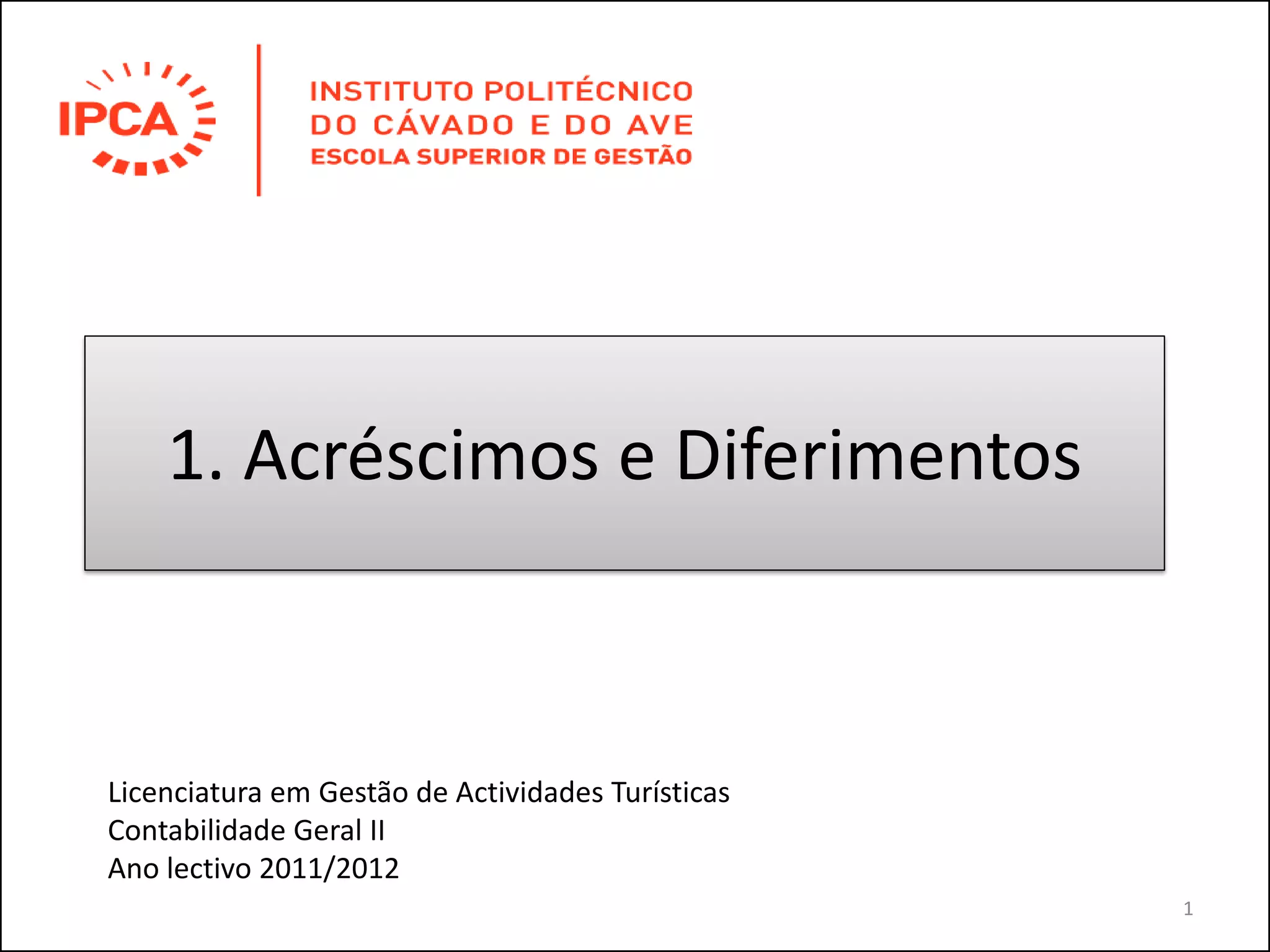 1. O documento discute os conceitos de acréscimos e diferimentos no âmbito da contabilidade financeira.