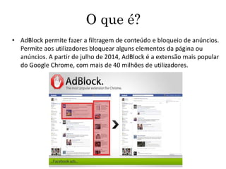 • O AddBlocké um aplicativo gratuito usado no Google Chrome ou no