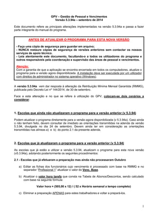 1. Este documento descreve as alterações na versão 5.3.94a do software GPV para gestão de pessoal e vencimentos, em resposta à alteração da Retribuição Mínima Mensal Garantida.