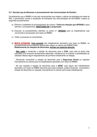3. Para escolas que já processaram outubro, devem eliminar o processamento e repeti-lo