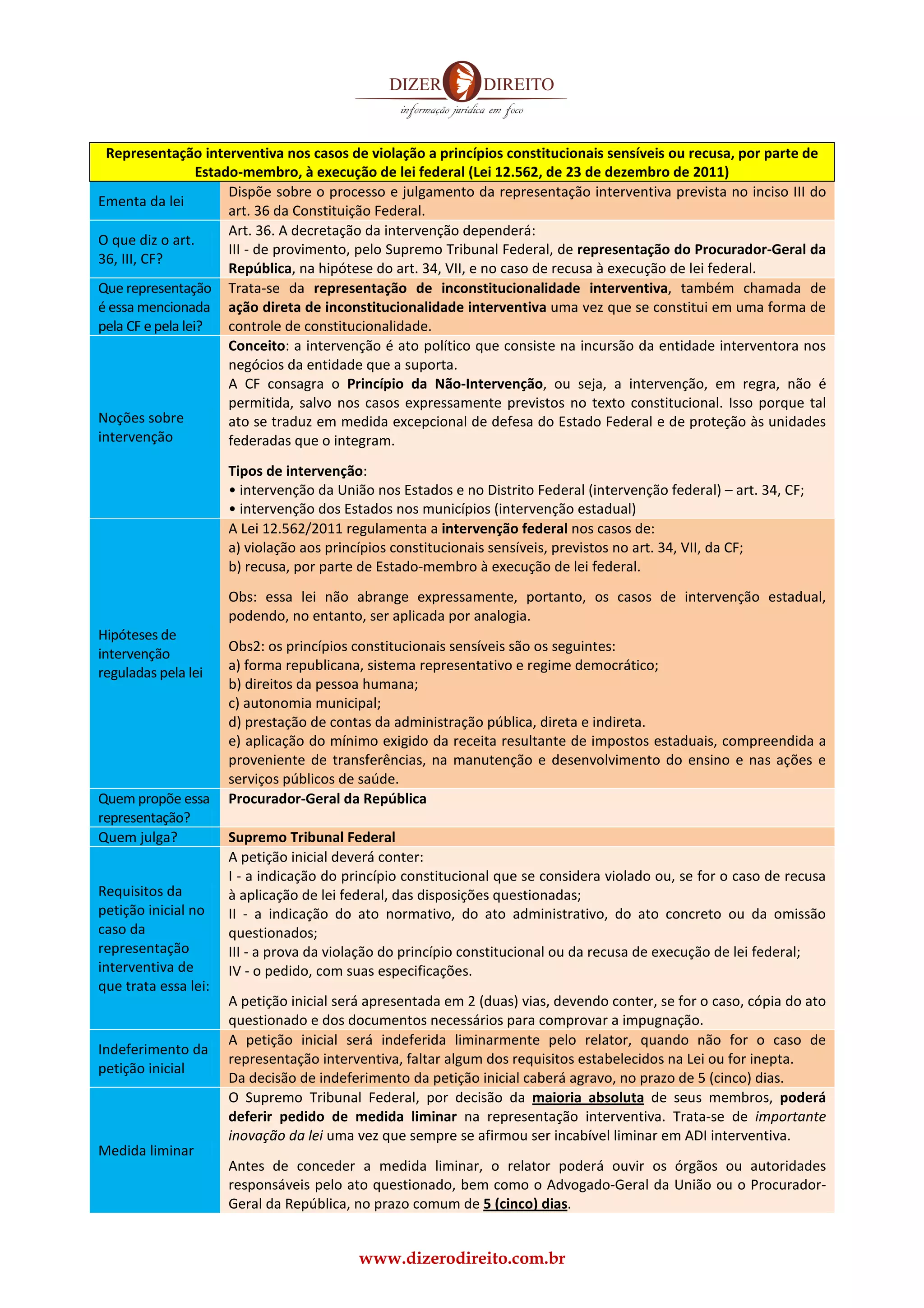 1) A lei regulamenta a representação interventiva proposta pelo Procurador-Geral da República ao STF nos casos de violação a princípios constitucionais ou recusa de Estado-membro em cumprir lei federal.