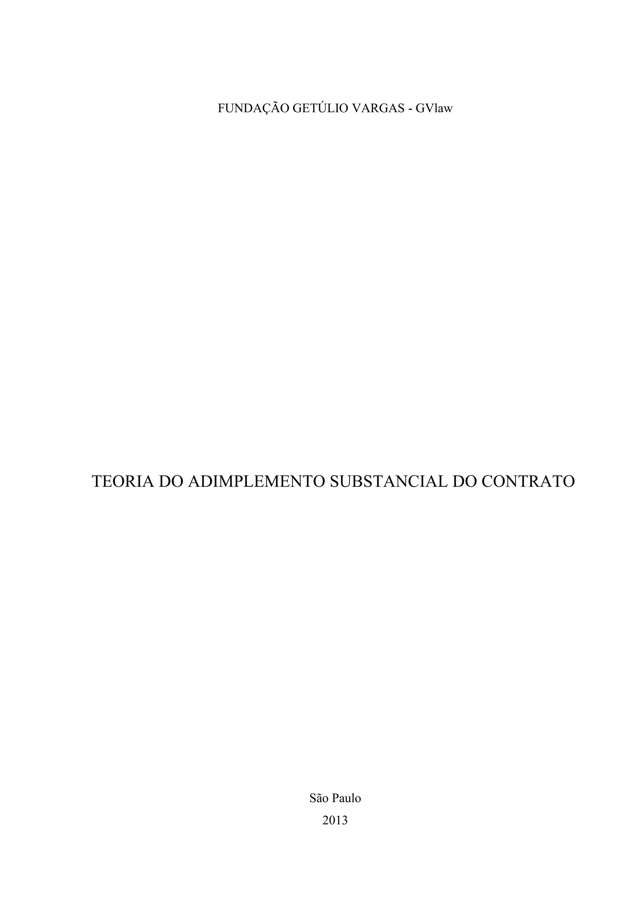1. O documento discute a Teoria do Adimplemento Substancial do Contrato, analisando quando o inadimplemento parcial não justifica a resolução do contrato.