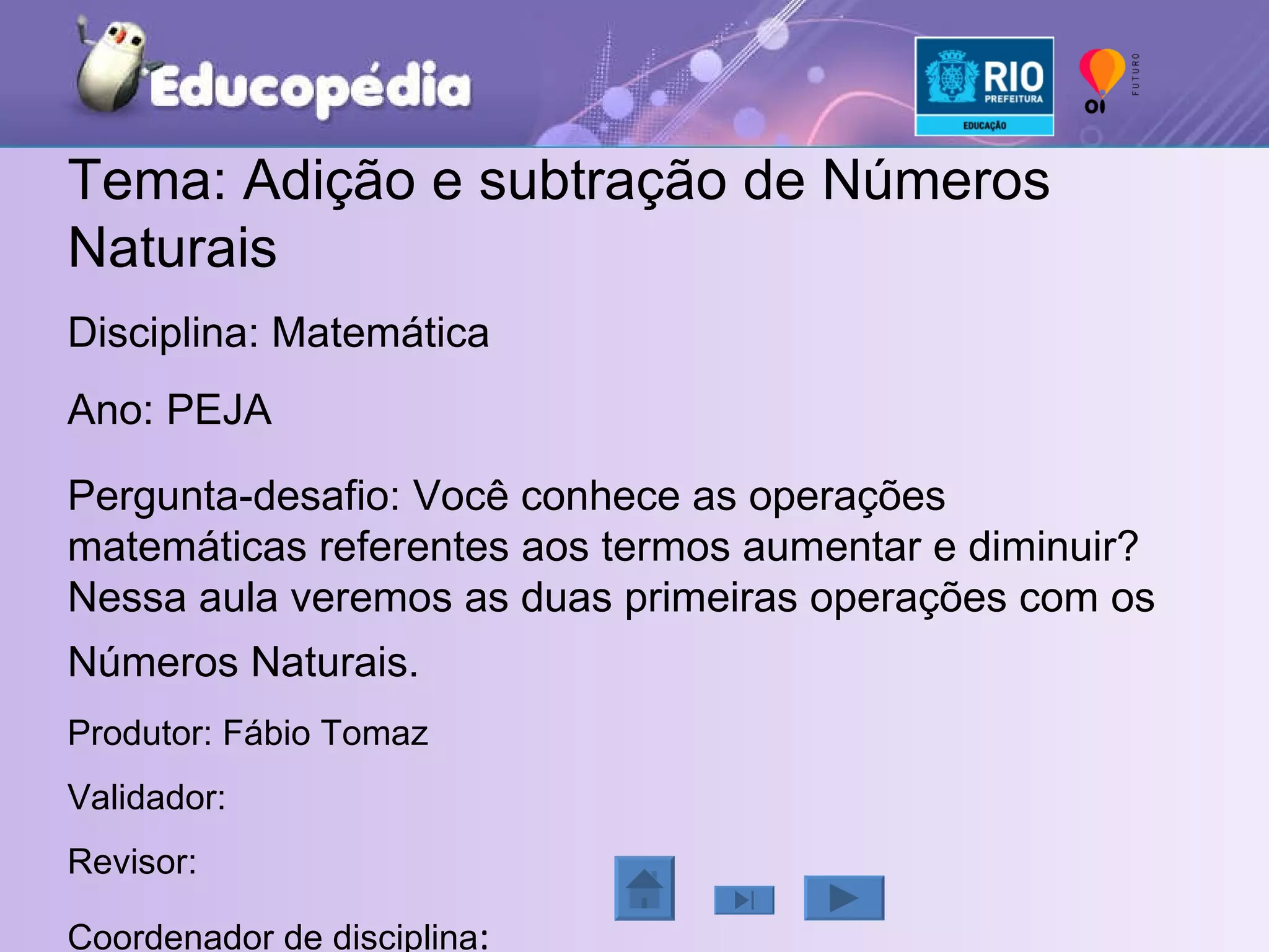 Este documento apresenta uma aula sobre adição e subtração de números naturais. A aula introduz os conceitos de adição e subtração, mostrando exemplos de situações que envolvem aumentar e diminuir quantidades. Vídeos e atividades são fornecidos para que os alunos pratiquem cálculos de adição e subtração e entendam melhor estas operações matemáticas básicas.