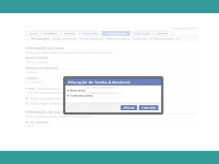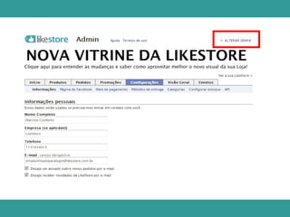 Este documento fornece três razões para usar o Admin da LikeStore fora do Facebook: 1) Gerenciar a loja sem usar o perfil pessoal do Facebook, 2) Ter mais área de visualização em dispositivos de gerenciamento, e 3) Maior velocidade e menos interferência de instabilidades do Facebook. Explica como acessar o Admin fora do Facebook usando um link ou login com o perfil do Facebook ou email e senha da loja.