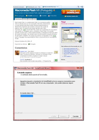 1) Como o Flash pode ser usado para criar animações interativas e aplicativos web;