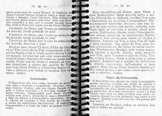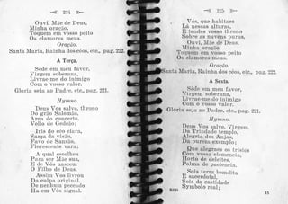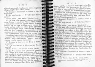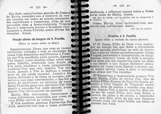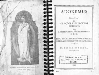 1) O documento contém orações e rituais católicos, incluindo orações para antes e depois das refeições, atos de contrição, salve rainha, e orações dedicadas a Jesus, Maria e José.