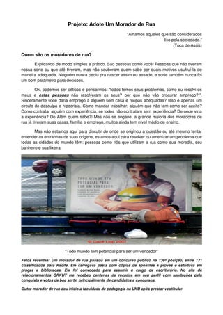 Projeto: Adote UmMorador de Rua