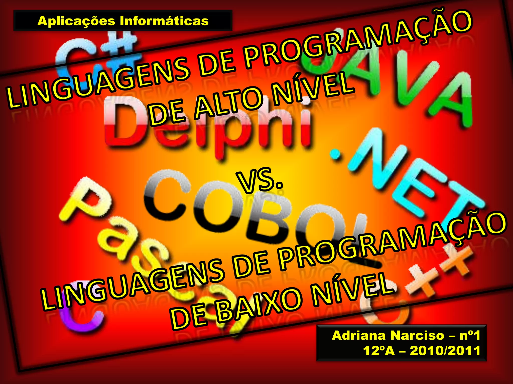 O documento discute linguagens de programação de alto e baixo nível. Apresenta que linguagens de alto nível são mais próximas da linguagem natural e permitem aos programadores esquecer os detalhes da máquina, enquanto linguagens de baixo nível são dependentes da máquina e programas nelas não podem ser executados em outras máquinas. Também menciona que existem 5 gerações de linguagens e que linguagens de alto nível surgiram na terceira geração.
