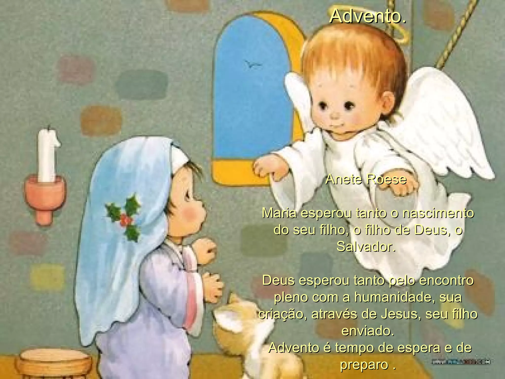 O documento descreve o significado do tempo de Advento, que antecede o Natal. É um período de espera e preparação espiritual para celebrar o nascimento de Jesus. Representa o momento em que Deus se aproximou da humanidade de forma humilde através de seu filho. Advento convida as pessoas a refletirem sobre o sentido da vida e da fé, e a se abrirem para o amor, o perdão e a comunhão.