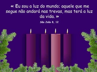 Este documento descreve o tempo do Advento na Igreja Católica. Ele convida os leitores a estarem vigilantes e preparados para receber Jesus, acendendo velas semanalmente como símbolo. O Advento é um tempo de esperança, alegria e bênção à medida que os cristãos se preparam para celebrar o nascimento de Cristo.