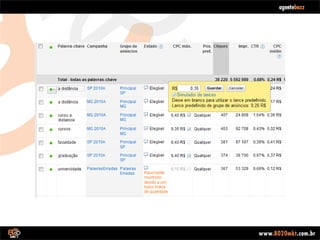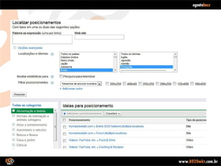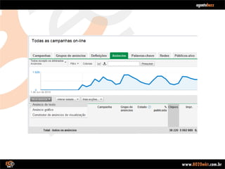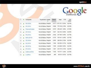 O documento fornece uma introdução sobre o Google Adwords, incluindo como funciona o sistema de leilão de palavras-chaves, estratégias básicas para criação de anúncios e a importância do Adwords para empresas que desejam impulsionar vendas online.
