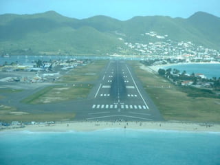 San Martin éuma pequena ilha que está situada, em pleno Mar do Caribe,perto de Porto Rico. Agora olha onde fica o Aeroporto. É impressionante!!! Aeroporto