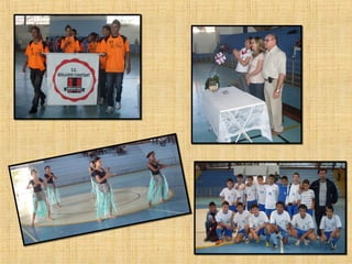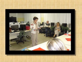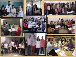 Este documento apresenta as ações realizadas pelo Núcleo Pedagógico de Língua Portuguesa em 2013. Foram realizados cursos e oficinas técnicas para professores de Língua Portuguesa com foco em avaliação da aprendizagem, sala de leitura, formação de gest