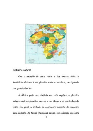 1) A África é o terceiro maior continente em área e abriga uma grande diversidade de paisagens, como savanas, desertos e montanhas.